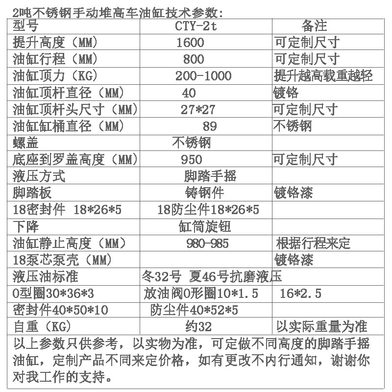 不锈钢1吨2吨手动堆高车液压油缸 脚踏手摇千斤顶 泰兴立式油压泵